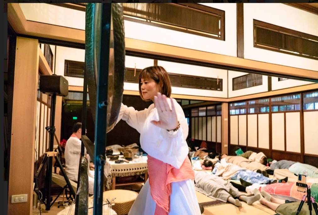 銅鑼,神聖的共振聲療系統。由人工打製的有無數凹槽的鑼面,發出來自宇宙OM的聲音能量,當鑼聲穿透身體的每一個細胞和神經系統,並與其它樂器一起共振,各種情緒和思想會從潛意識中被激發出來,被擊碎,沖刷,開啟震撼內心的深層療癒。